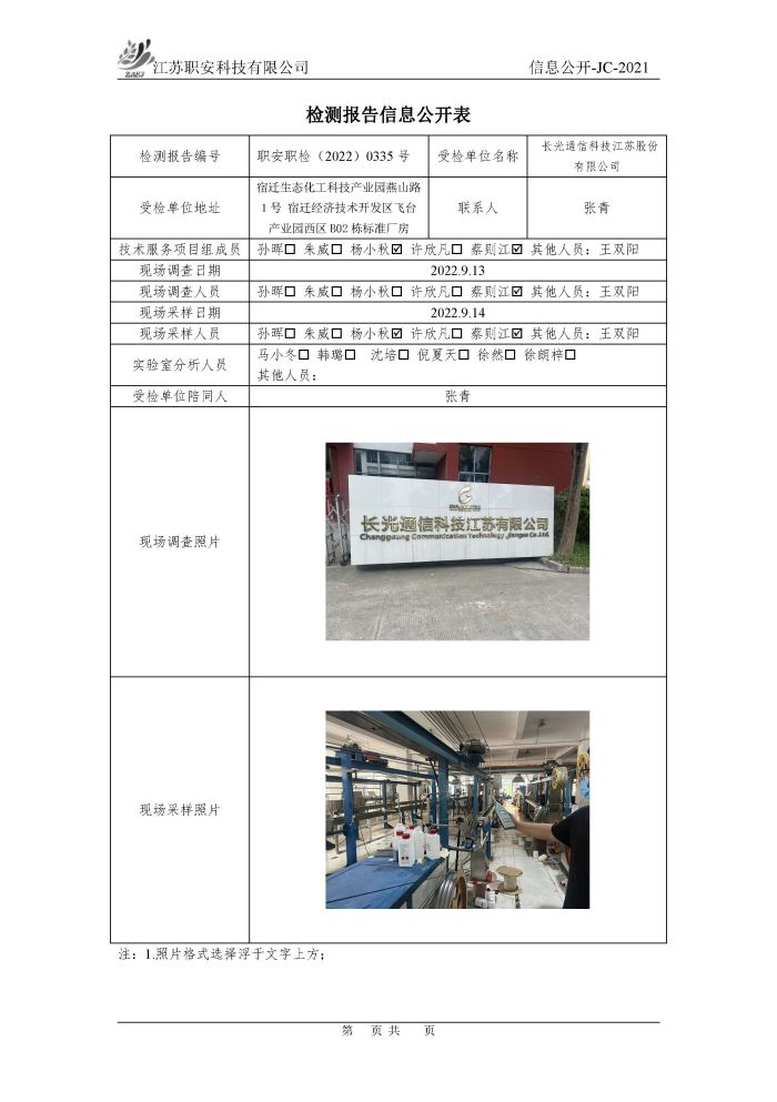 檢測報告公示