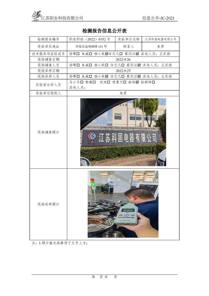 檢測報告公示
