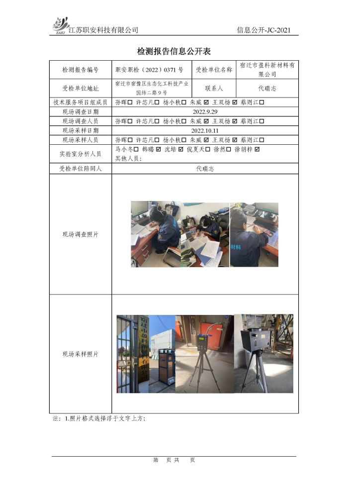 檢測報告公示