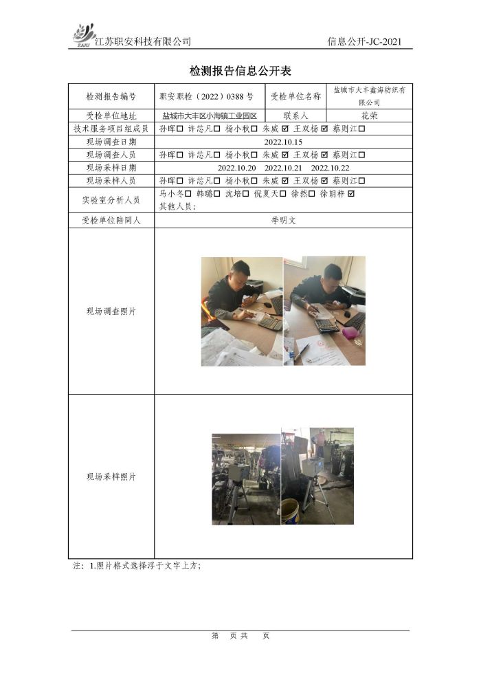 檢測報告公示