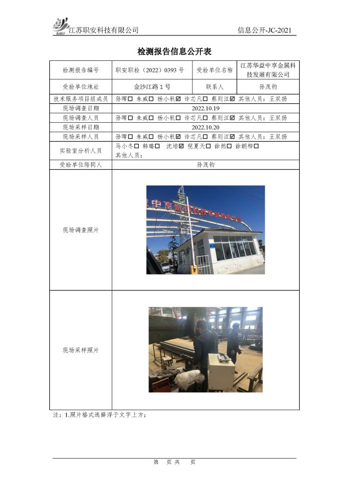 檢測報告公示