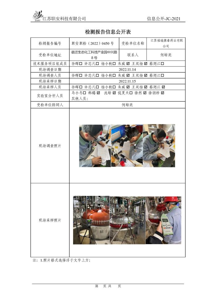 檢測報告公示