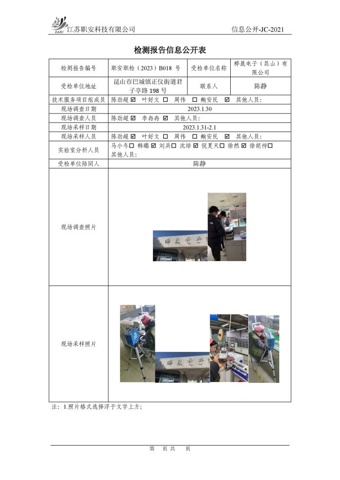 檢測報告公示