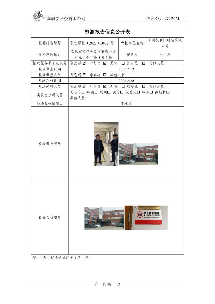 檢測報告公示