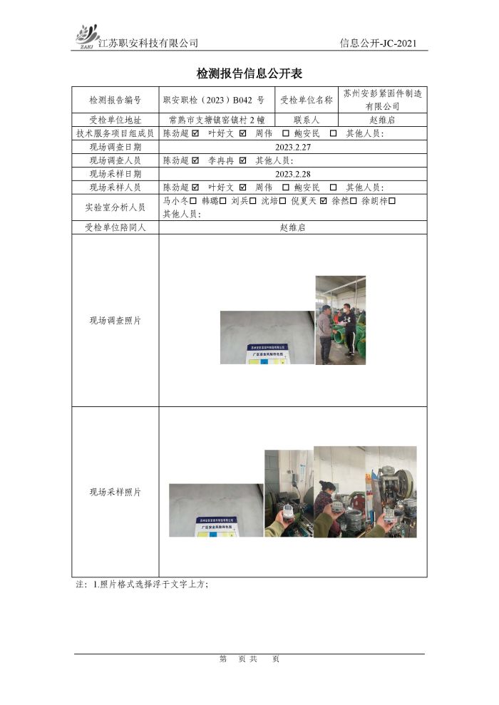 檢測報告公示