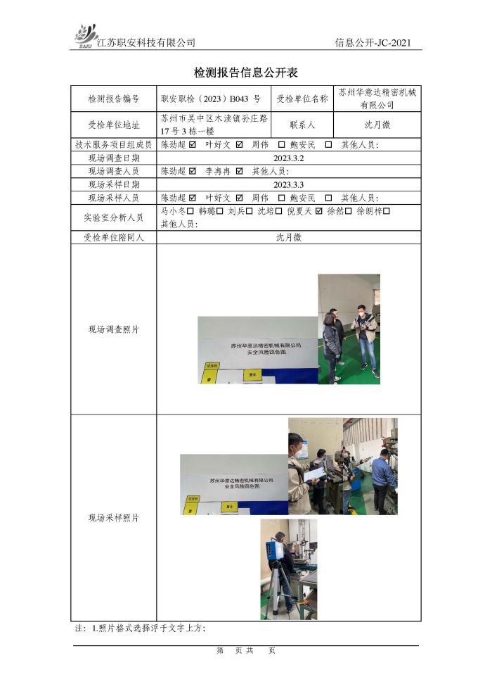 檢測報告公示