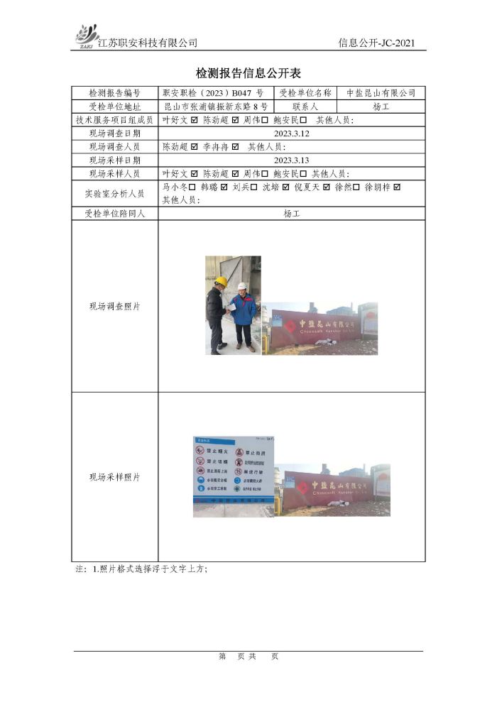檢測報告公示