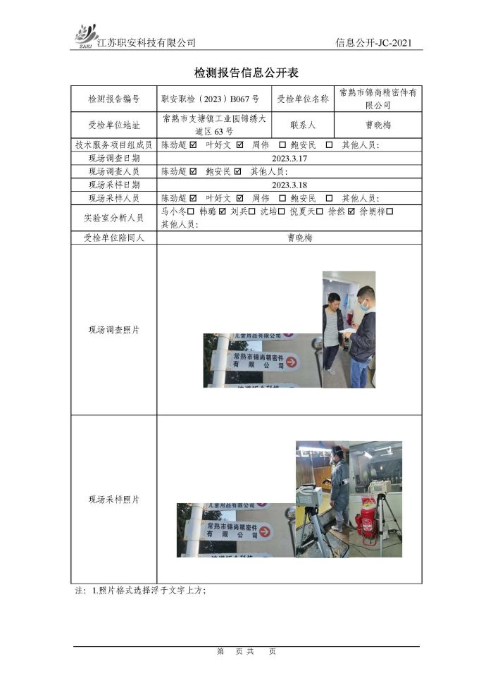 檢測報告公示
