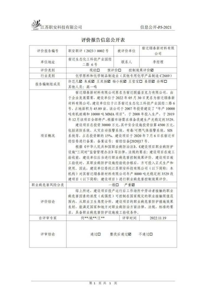 檢測報告公示