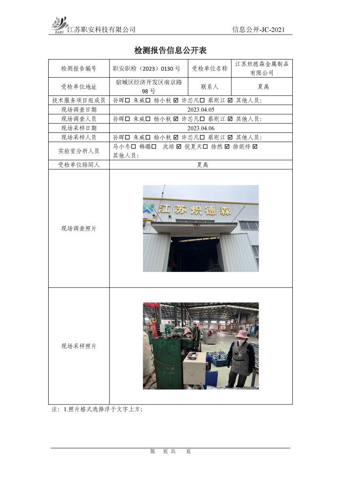 檢測報告公示