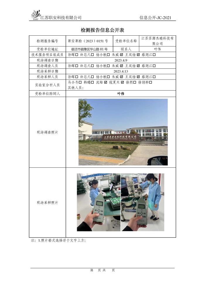 檢測報告公示