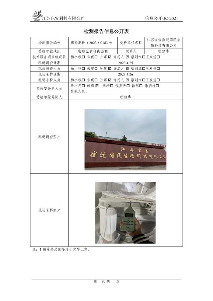 檢測報告公示