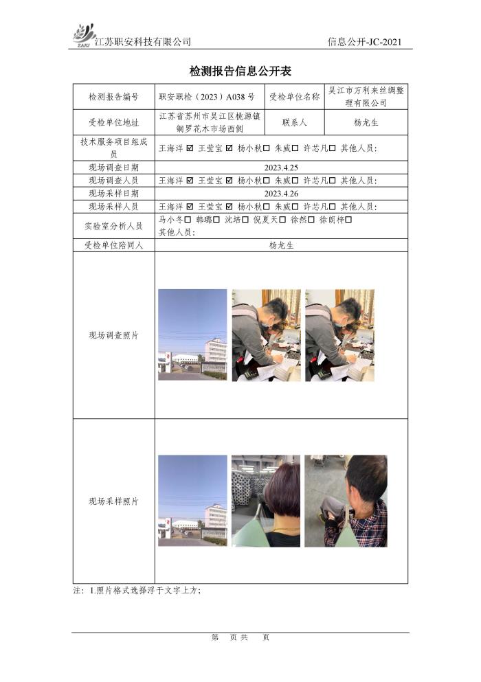 檢測報告公示