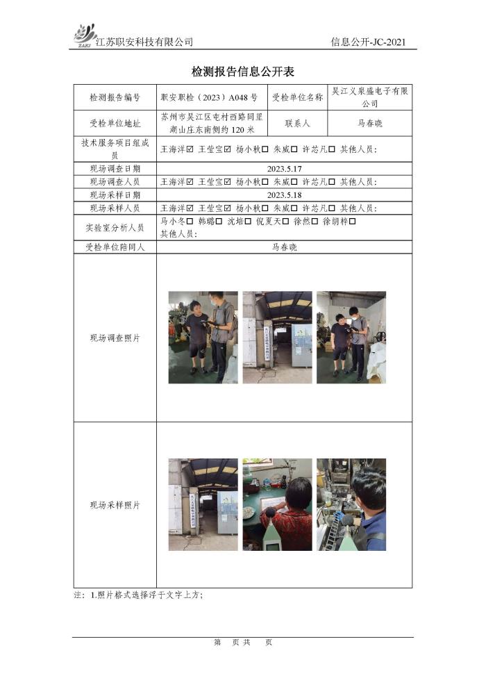 檢測報告公示