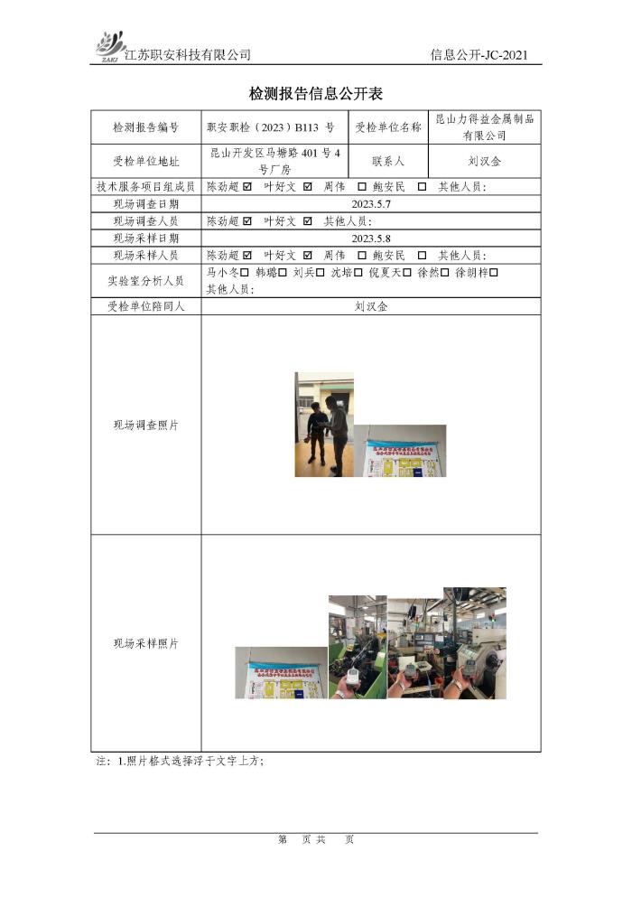 檢測報告公示