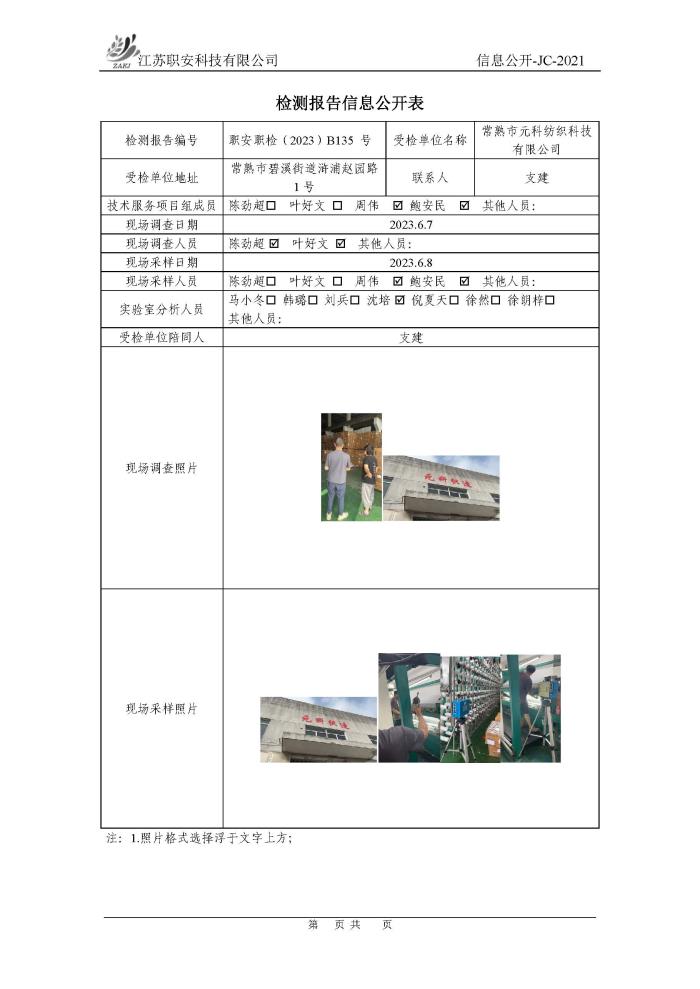 檢測報告公示