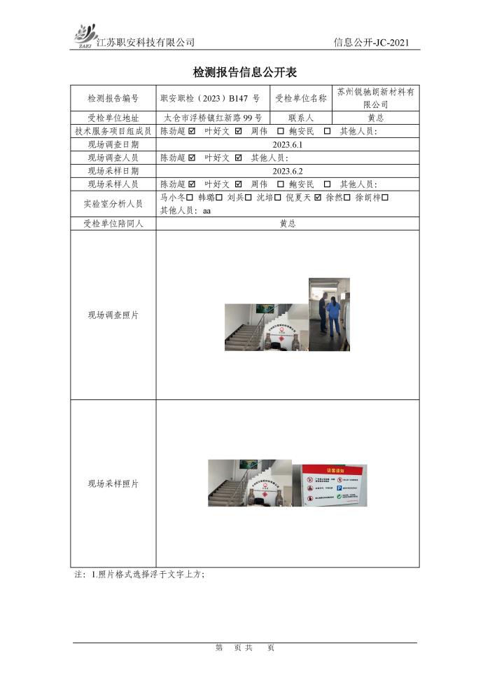 檢測報告公示