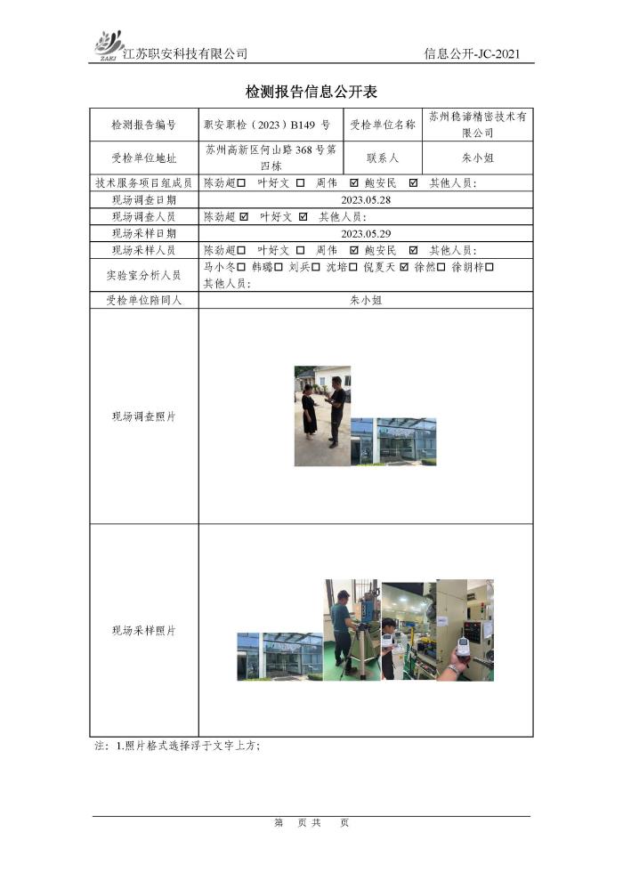 檢測報告公示