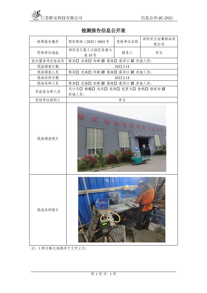 檢測報告公示
