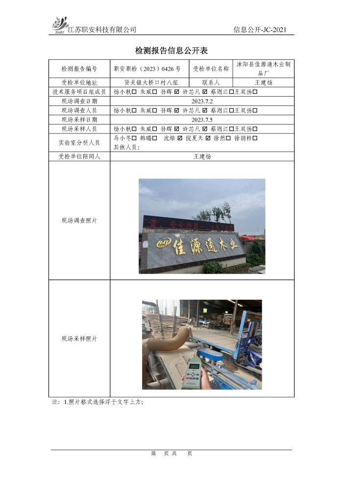 檢測報告公示