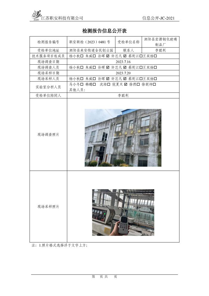 檢測報告公示