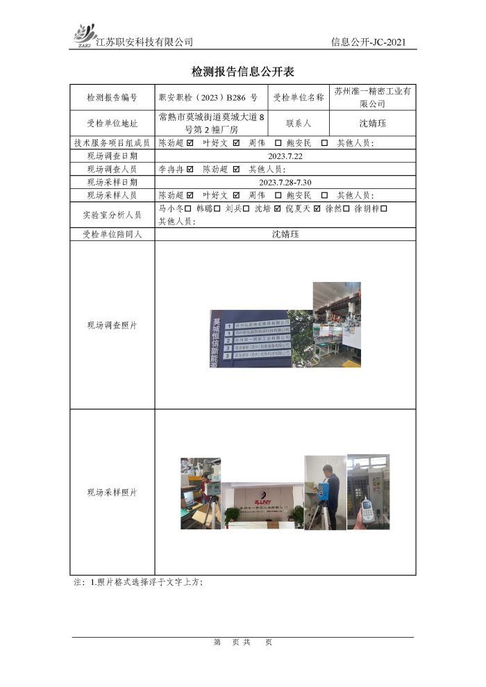 檢測報告公示