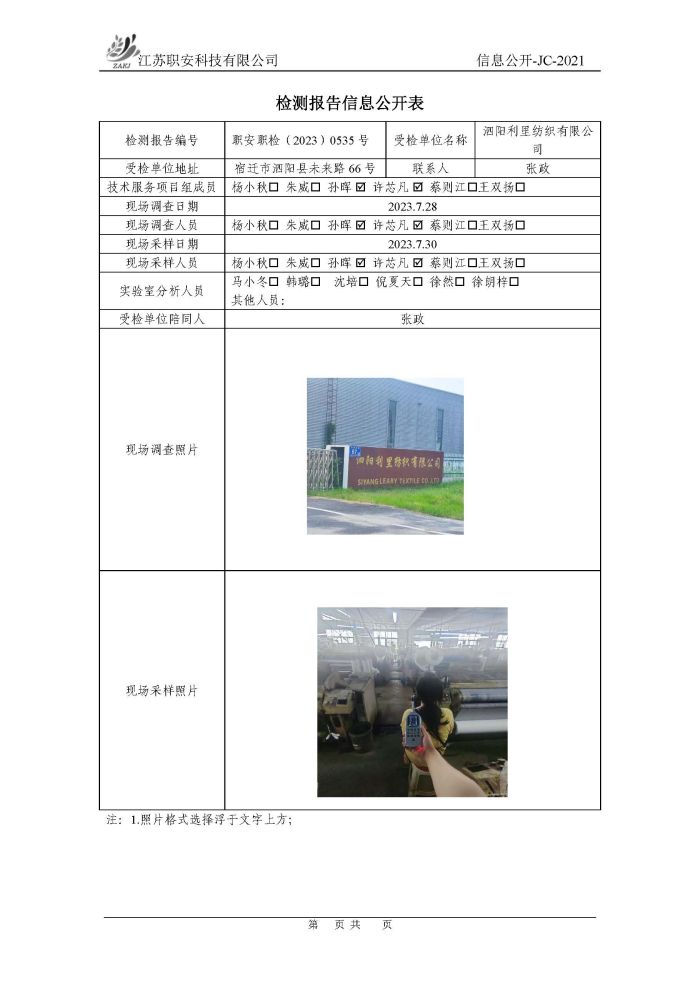 檢測報告公示