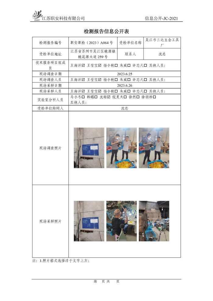 檢測報告公示