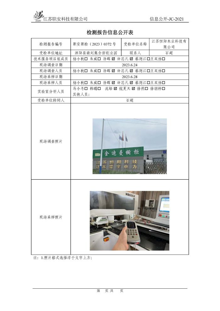 檢測報告公示