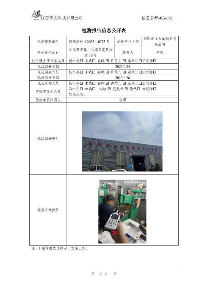 檢測報告公示