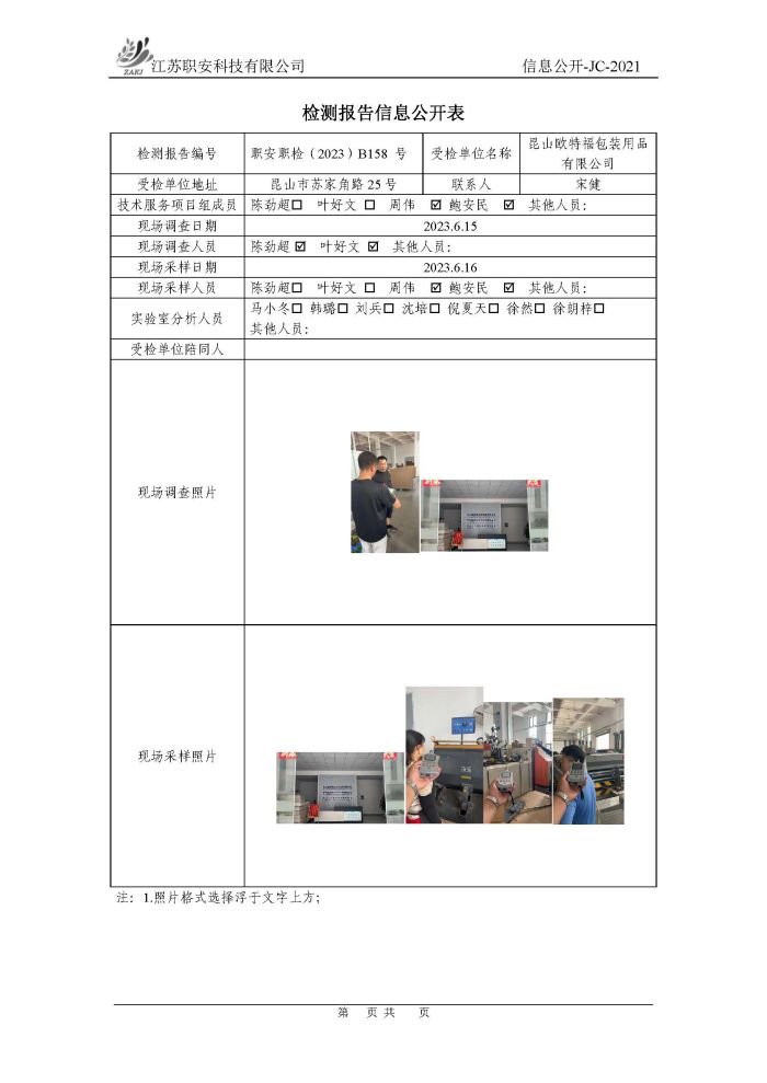檢測報告公示