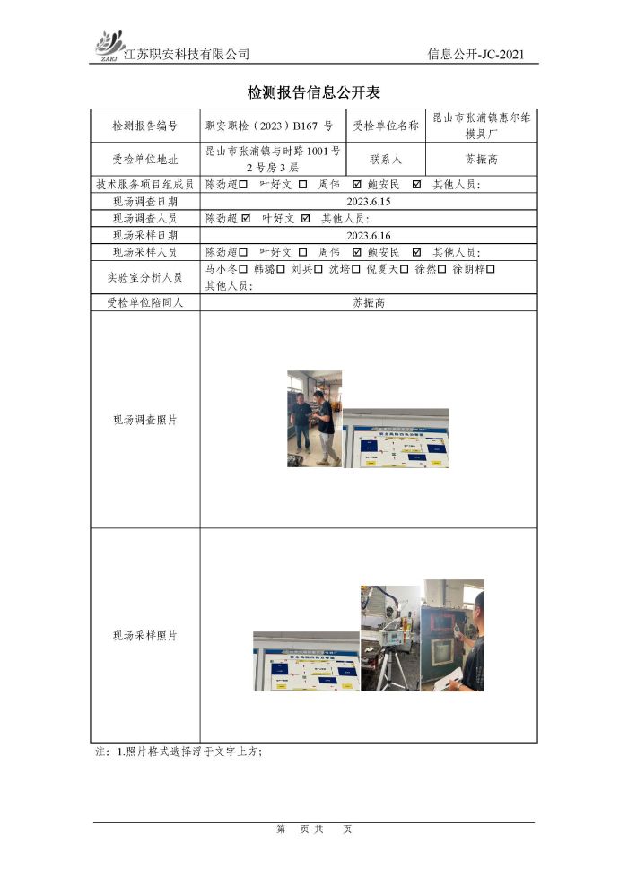 檢測報告公示