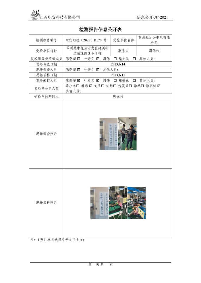 檢測報告公示