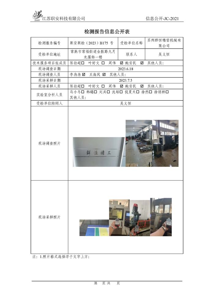 檢測報告公示