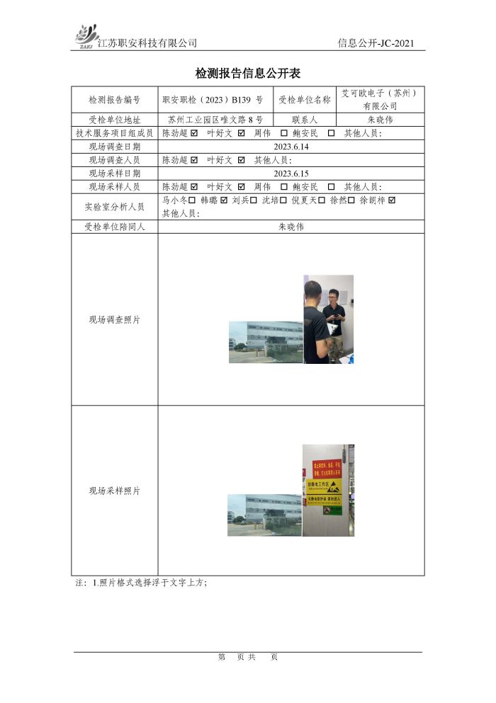 檢測報告公示