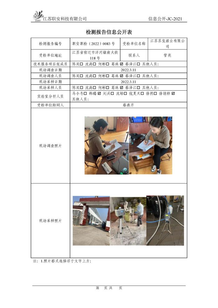 檢測報告公示