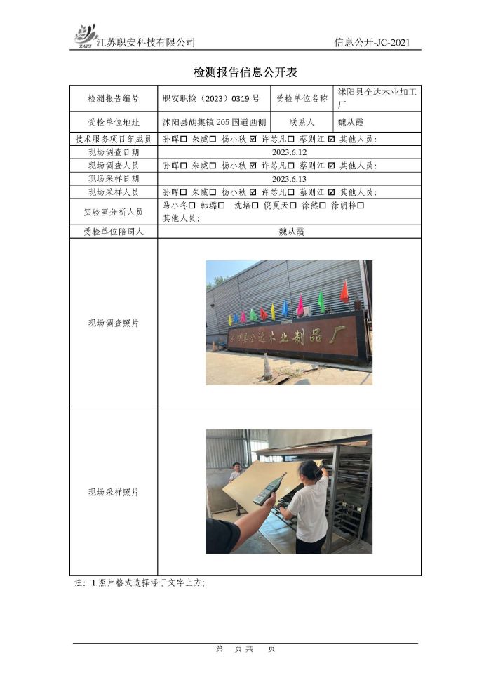 檢測報告公示