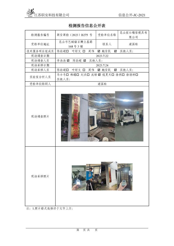 檢測報告公示