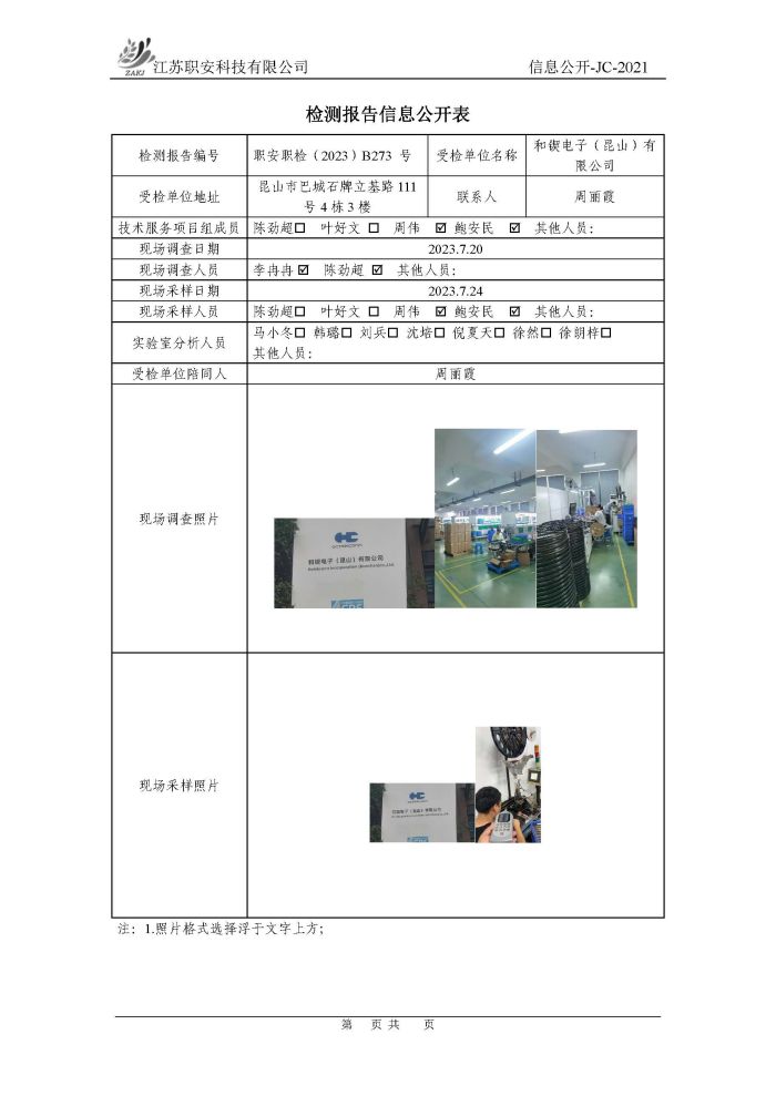 檢測報告公示