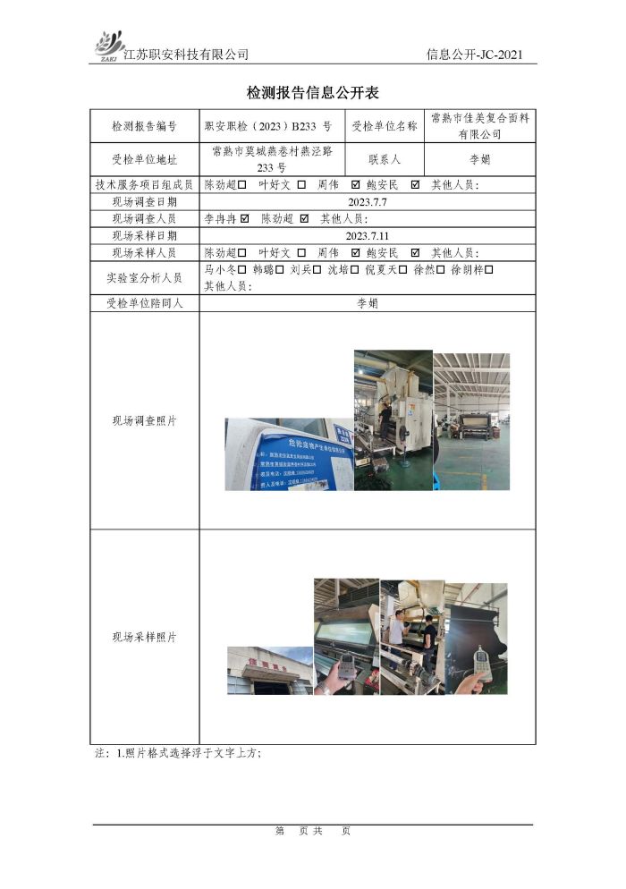 檢測報告公示