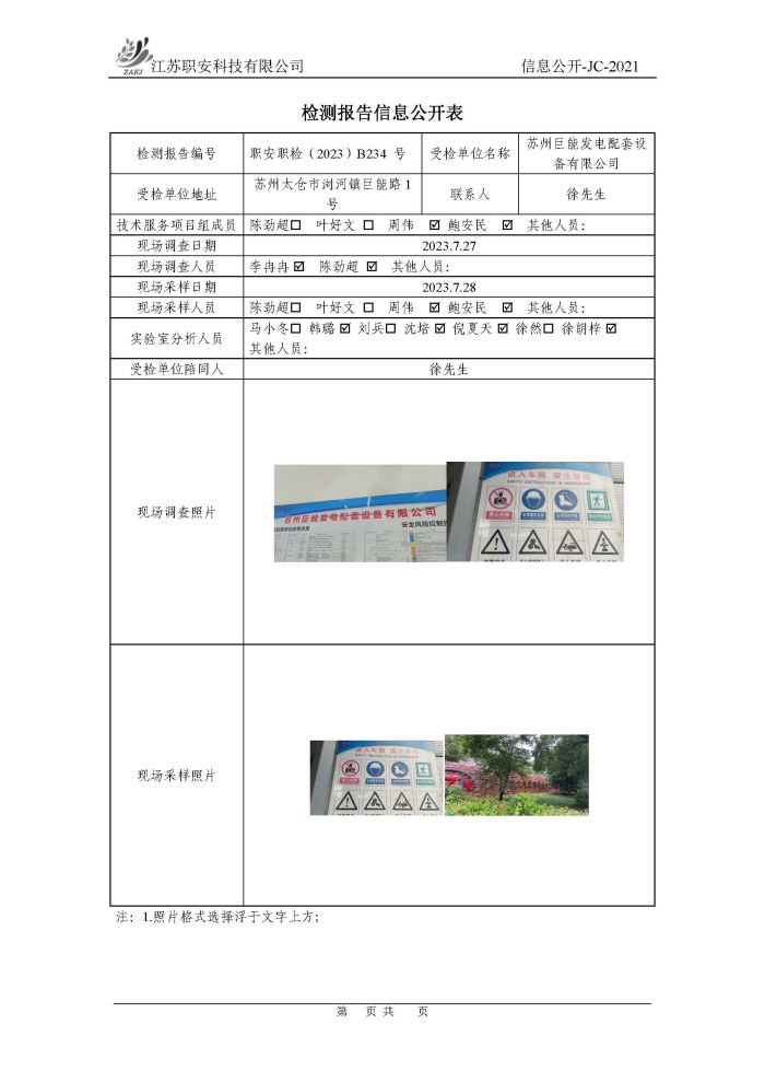 檢測報告公示