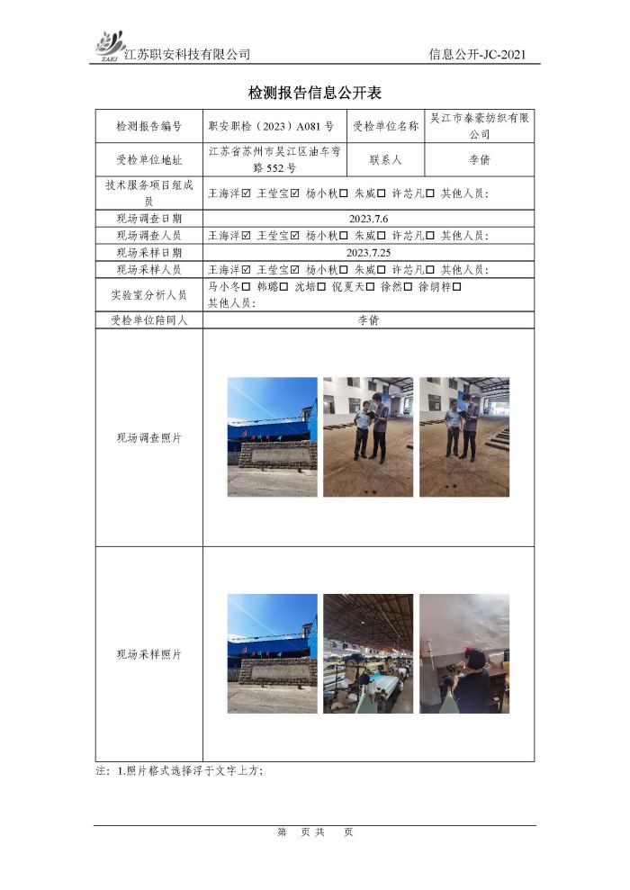 檢測報告公示