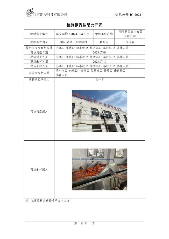 檢測報告公示