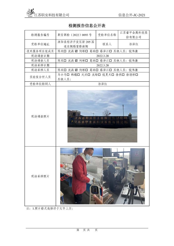 檢測報告公示