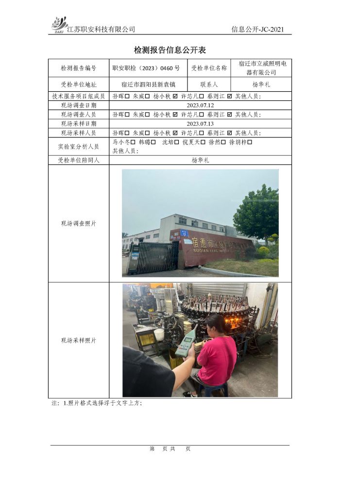 檢測報告公示