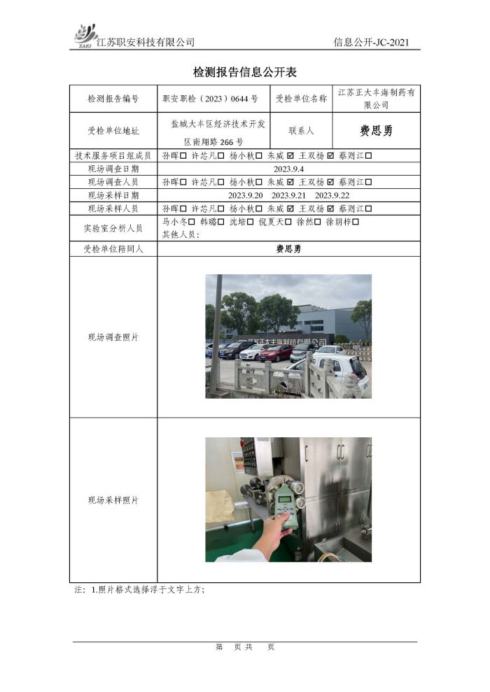 檢測報告公示