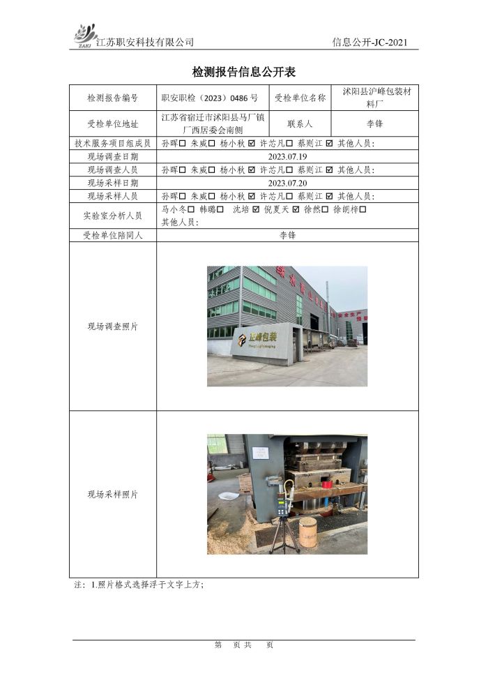 檢測報告公示