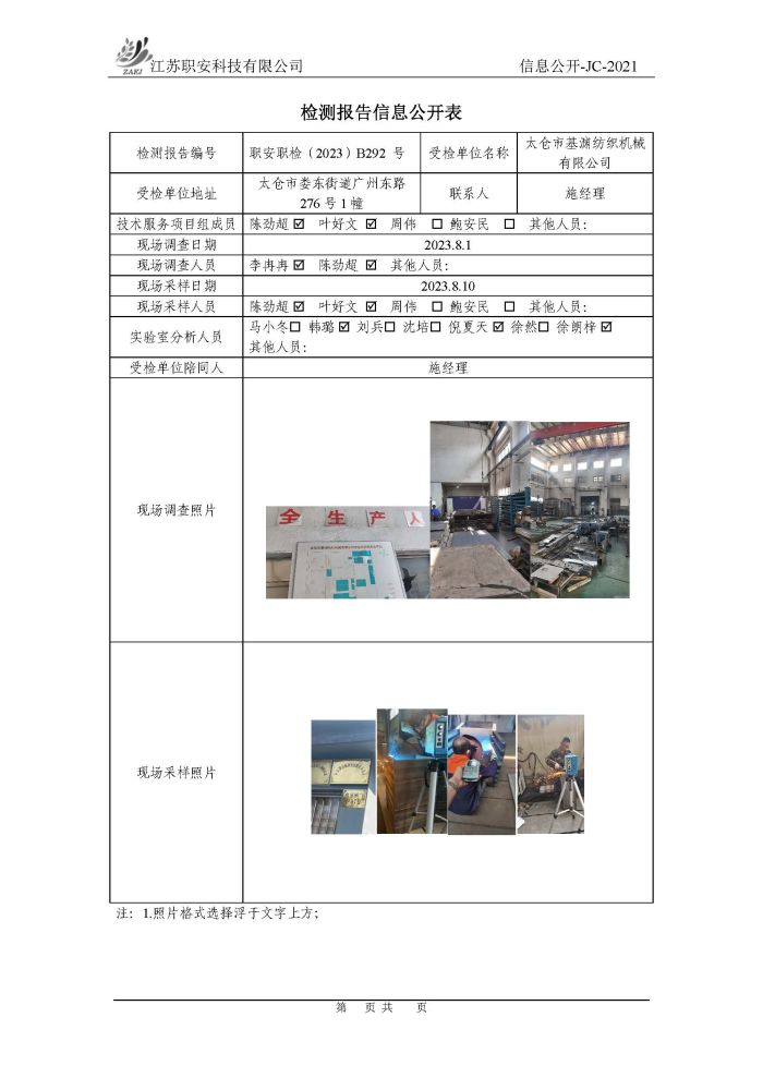 檢測報告公示