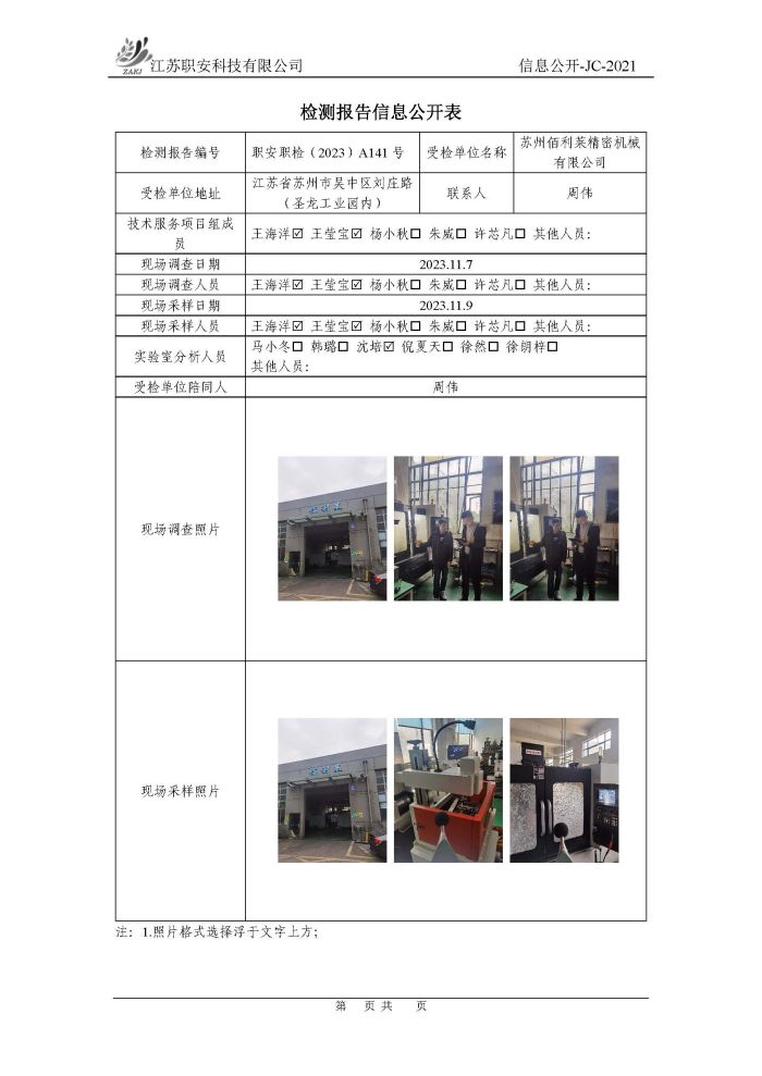 檢測報告公示