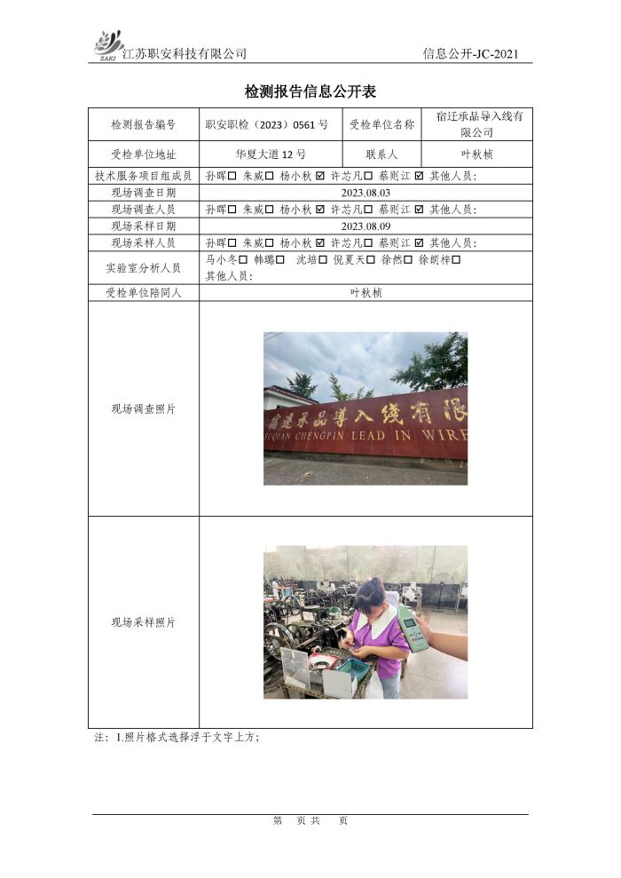 檢測報告公示
